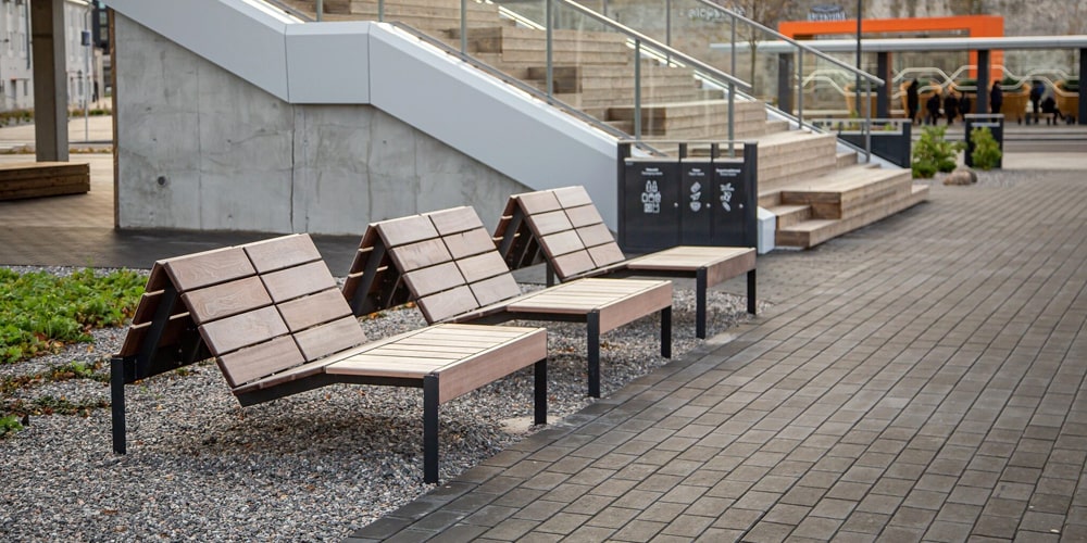 - پیاده روها و خیابان ها: مبلمان شهری پیش ساخته می تواند به ایجاد فضاهایی برای نشستن و استراحت بین راه در پیاده روها و خیابان ها کمک کند. به عنوان مثال، می توان از نیمکت ها و صندلی ها برای ایجاد فضاهایی برای استراحت و تماشای مردم و ترافیک استفاده کرد.