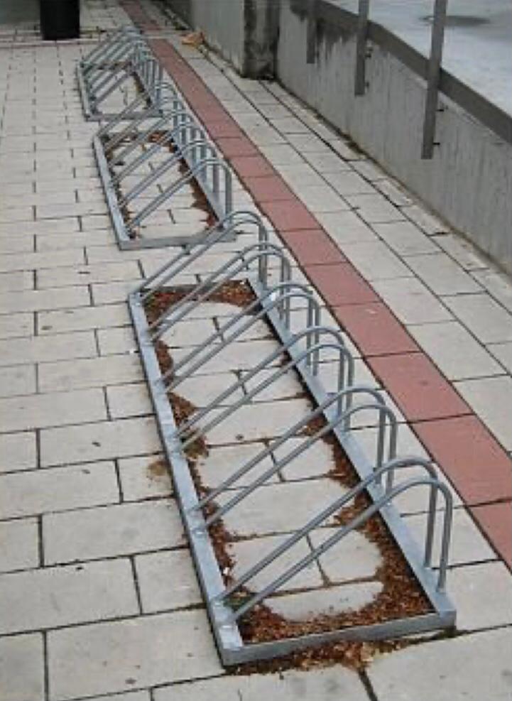 - پارکینگ ایستاده بر روی زمین: این نوع از انواع پارکینگ دوچرخه ها را به طور مستقیم روی زمین قرار میدهند. معمولاً از قابها یا استندههایی که در زمین جا میشوند، استفاده میشود. این نوع پارکینگها به طور گسترده در فضاهای باز مانند پارکها، میدانها و محوطههای عمومی دیگر استفاده میشوند.
